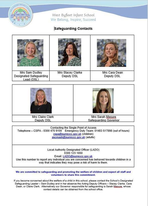 On entering the school, all staff and visitors are asked to read our safeguarding notice, shown below. If you become concerned about the welfare of a child in school, please contact the School's Designated Safeguarding Lead, Mrs Sam Dudley, and in her absence the Deputy Officer, Mrs Stacey Clarke, Mrs Cara Dean, Mr Dan Browning or Mrs Claire Clark. Alternatively our Governor responsible for safeguarding is Mrs Sarah Mesure, whose contact details can be obtained from the school office.