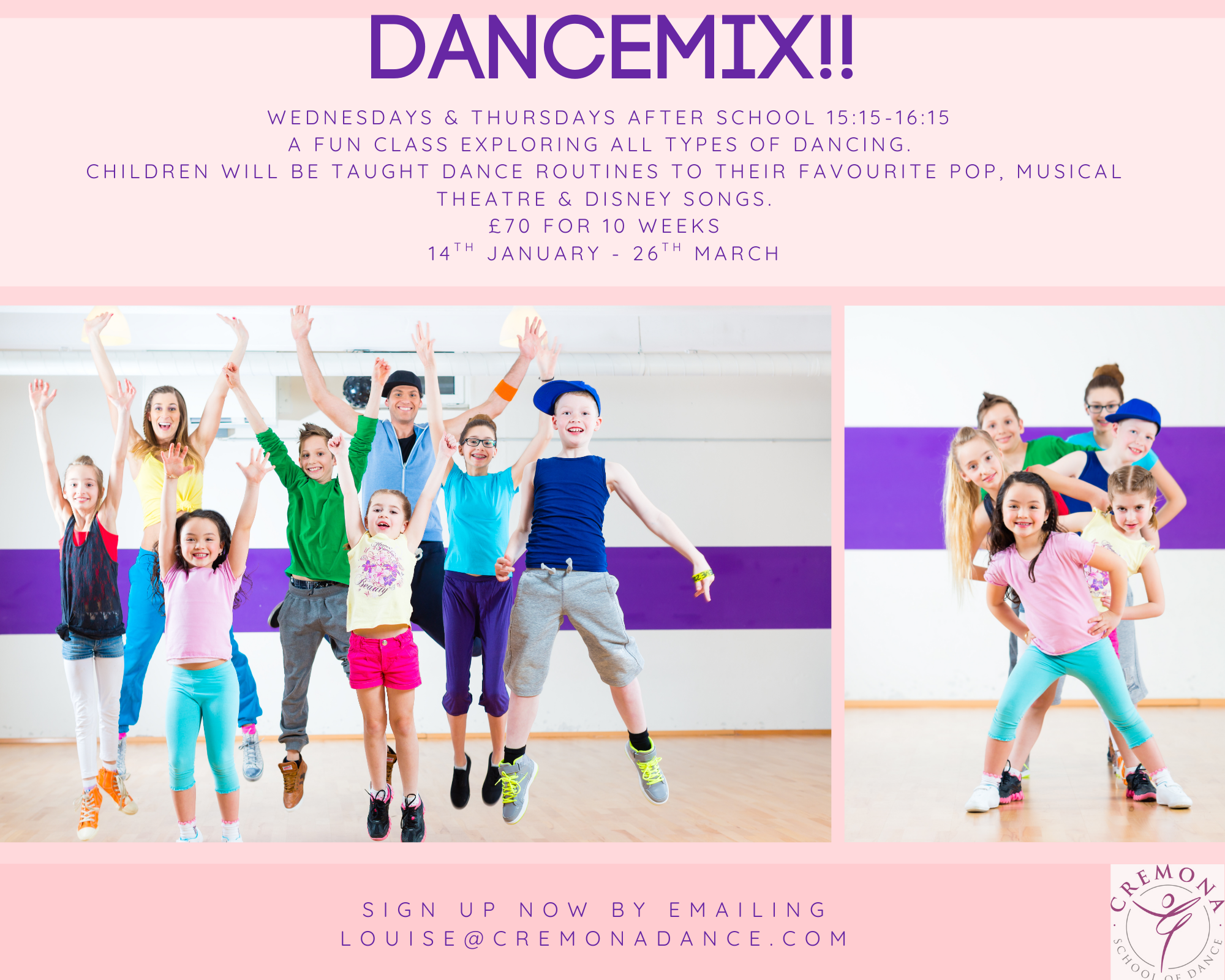 Thursday     Dancemix 3:15pm - 4:15pm     KS1 (Year 1 and 2)